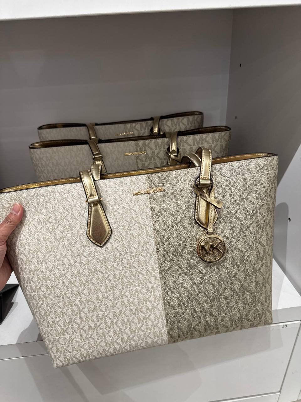(Pre Order) Michael Kors sheila large mf tote in signature vanilla gold quantity