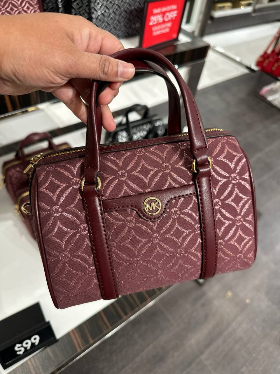 Be the first to review “Michael Kors small duffle in signature jacquard oxblood multi” Cancel reply
