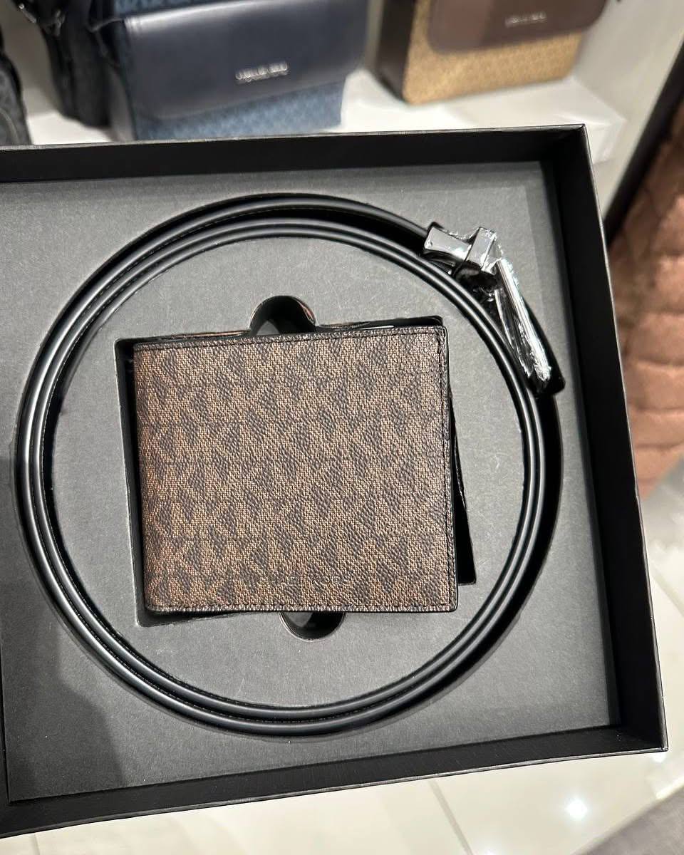 (Pre Order) Michael Kors wallet and belt gift set in signature brown