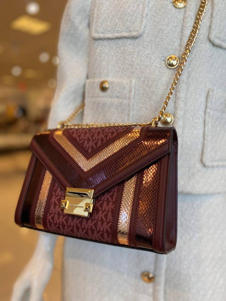 (Pre Order) Michael Kors whitney medium flap shoulder in signature oxblood multi