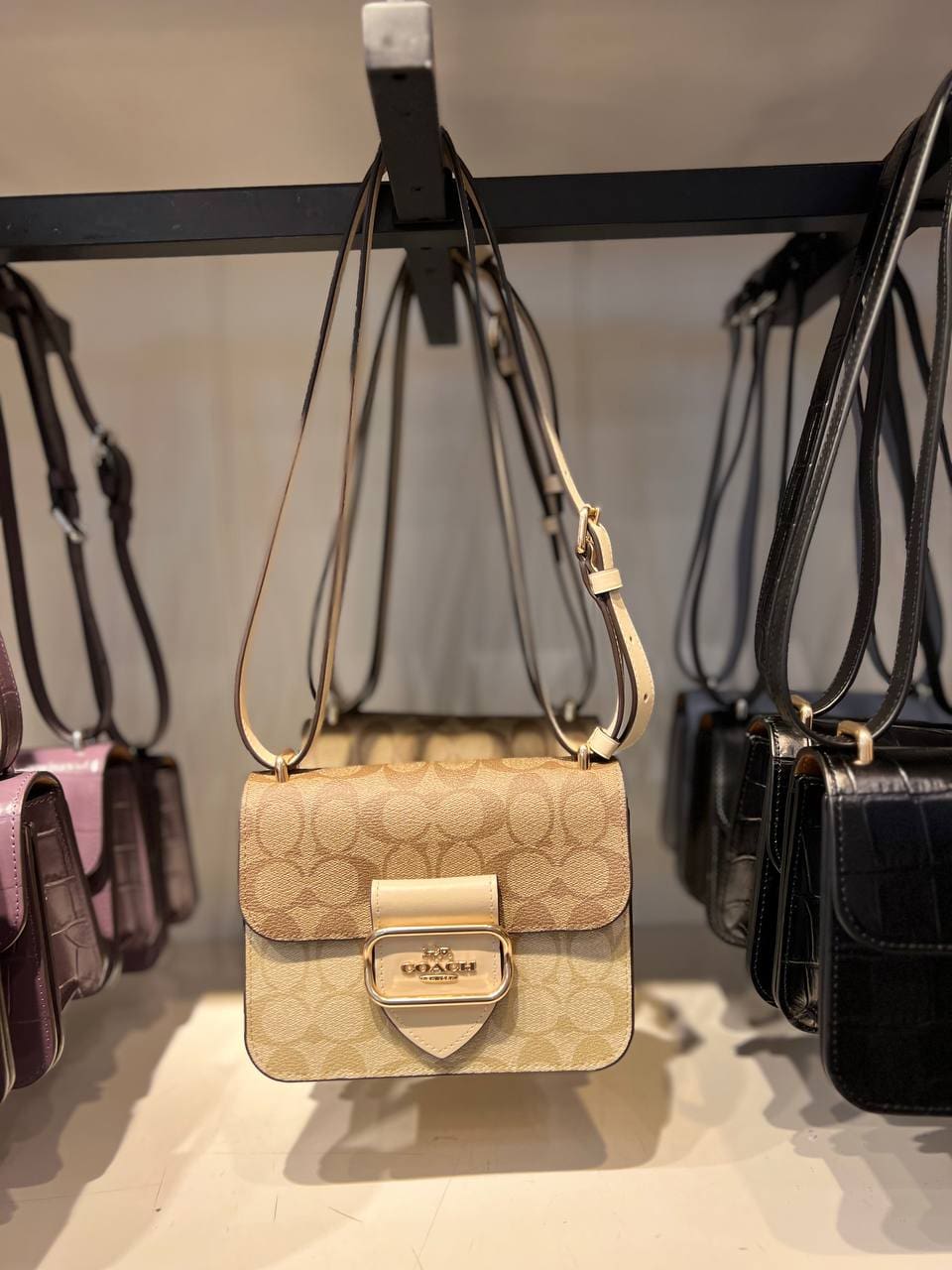 (USA Ready Stock) Coach Morgan Square Crossbody In Blocked Signature Canvas Khaki Chalk