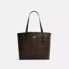 (USA Ready Stock) coach signature open city tote in signature brown black