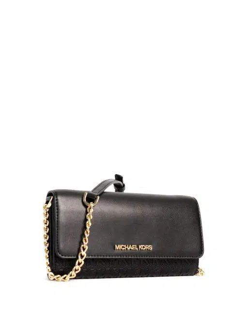 (USA Ready Stock) michael kors jet set item large wallet on a chain vegan faux leather in black