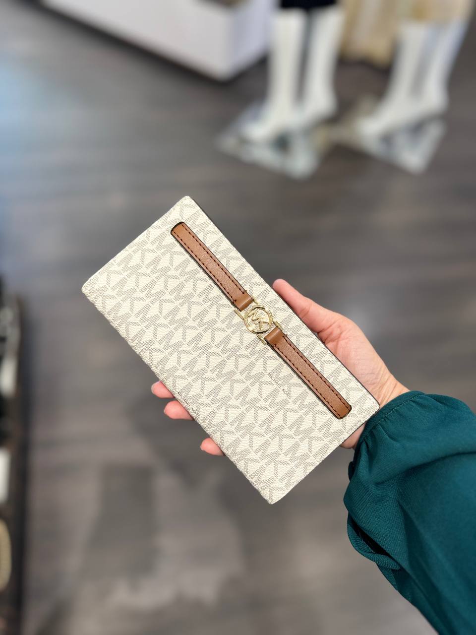 (USA Ready Stock) Michael Kors reed long snap wallet in signature vanilla