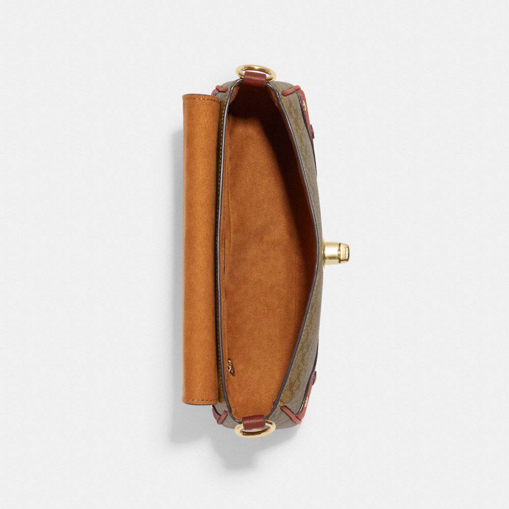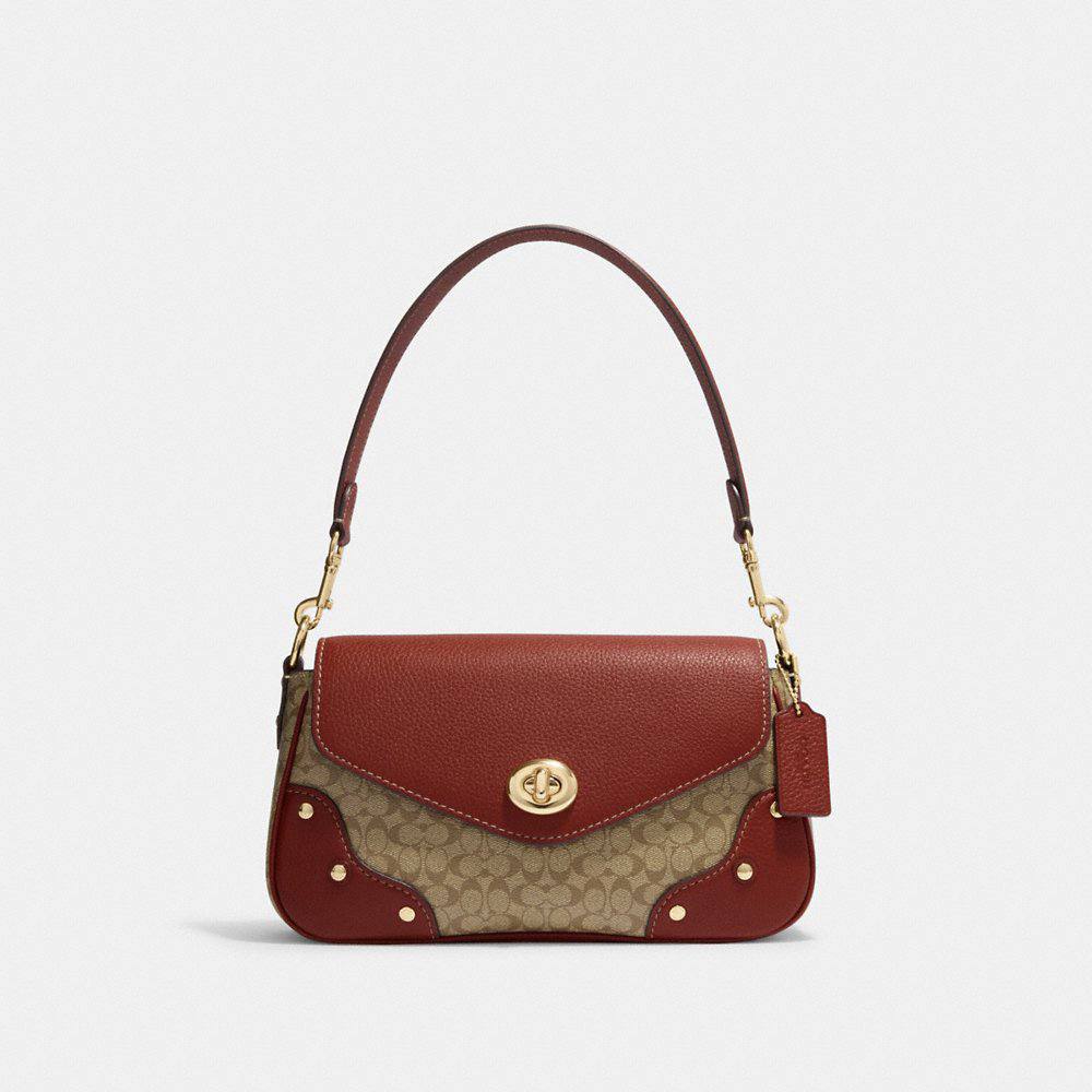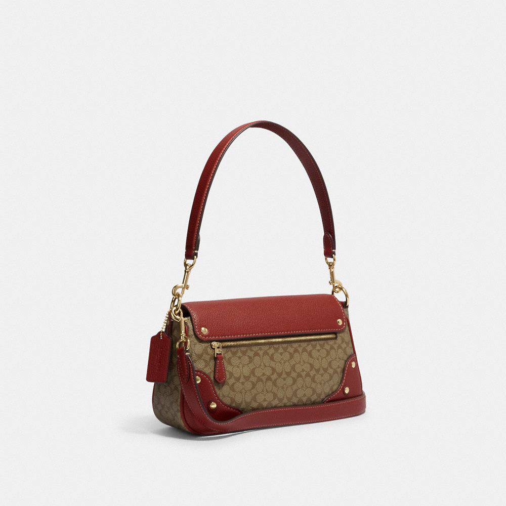 - Detachable strap with 21 3/4″ drop for shoulder or crossbody wear