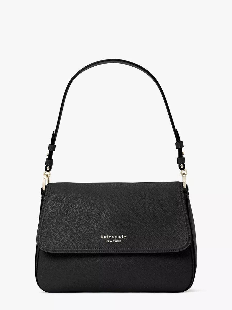 - Crafted from luxe pebbled leather, add a dash of elegance to your wardrobe with the Kate Spade Hudson Medium Convertible Shoulder Bag, which features a flap closure, with an additional, adjustable shoulder strap.