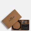 (USA Ready Stock) Coach boxed card case and belt gift set in colorblock signature charcoal black
